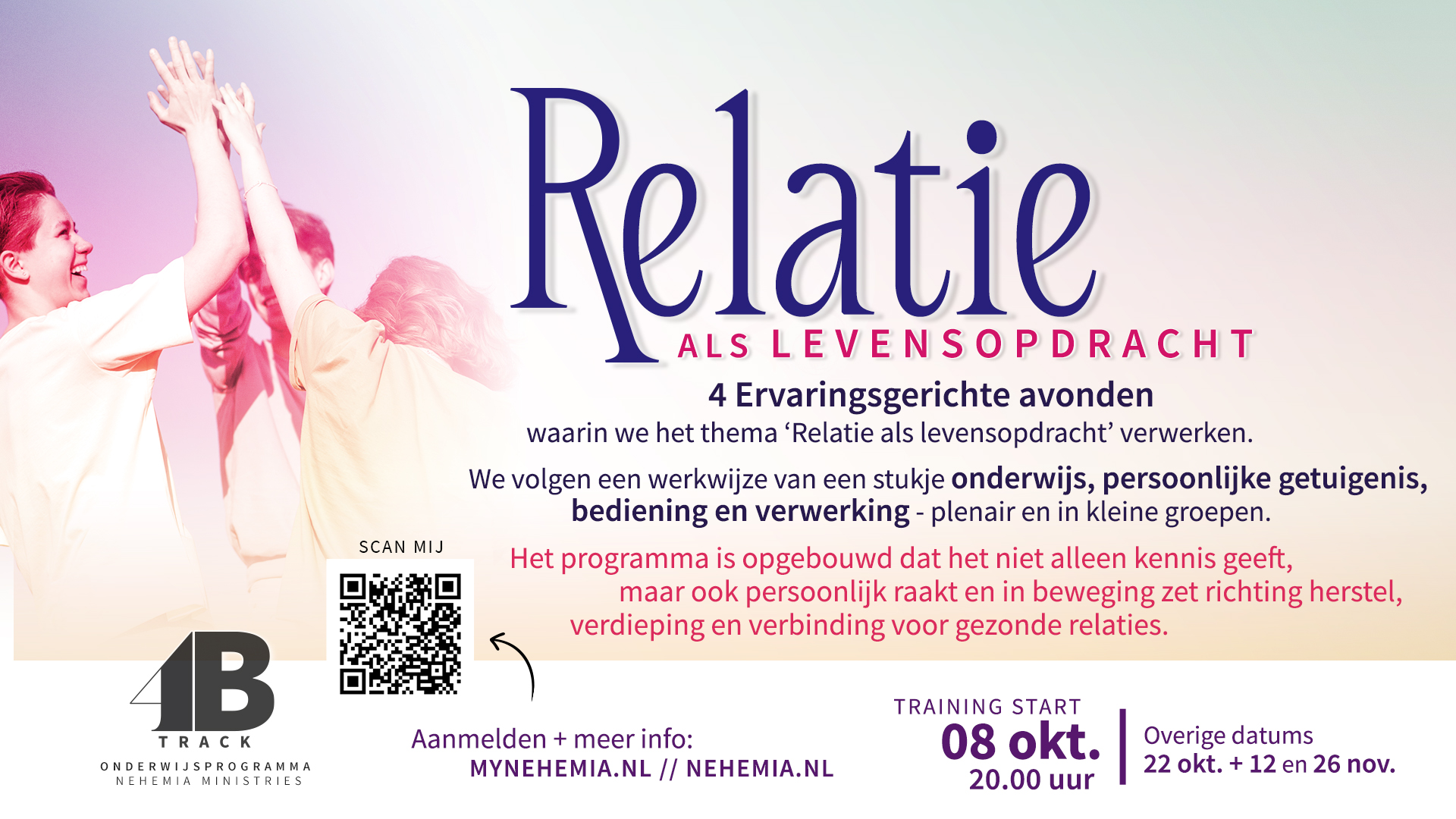 Tijdens deze 4B-track duiken we in de kunst van gezonde relaties – op basis van Bijbelse principes én praktische psychologische inzichten. We ontdekken hoe je kunt groeien in liefde, grenzen, communicatie, vergeving en verbinding.