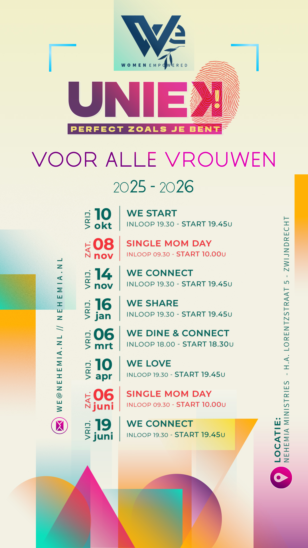 Blijf op de hoogte van de laatste ontwikkelingen rondom de WE events via ons Instagram account: @we_nehemia